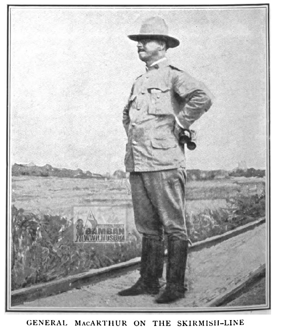 Riding in two military Jeep, the MacArthurs, in fact were no strangers in Bamban. His father, then Major-General Arthur MacArthur, was also in Bamban, at around 11 a.m. and entered the town from the south along the Mabalacat wagon road after the successful assault of the Bamban Line with his Second Division, 8th Corps on November 11, 1899. Forty-six years pass-forward, the son, Douglas, entered Bamban from the north (his headquarters was located at the administration building in Hacienda Luisita in Tarlac, Tarlac), in conjunction with the 40th Division operations in the town. The Jeep he was riding was marked with the emblem of the 5-star general in the front hood and a perfect target for Japanese snipers holed near the roads and hiding from among the cogon grass. In fact, the General disregard safety in the battlefields of the Bamban and later at Clark Field, that his staff officers complained.