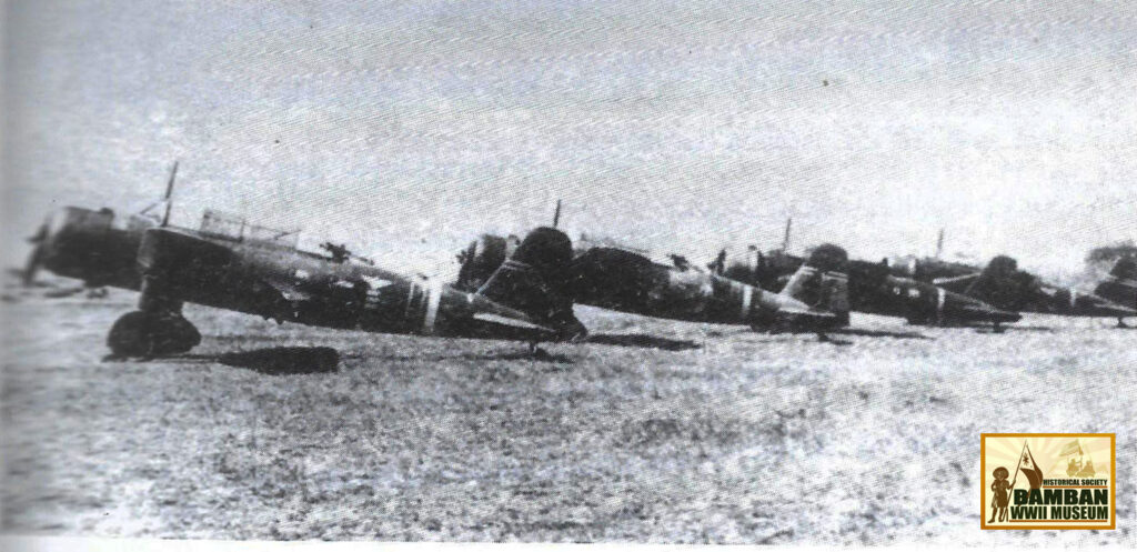 During the defense of the Filipino line north of Tarlac, 19 Nakajima Ki-27 Type 97 Fighter (Allied name “Nate”) from 50th Air Regiment, 4th Air Brigade, 5th Air Group, were dispatched from Vigan Airfield, Ilocos Sur in support of the Japanese Army operation against the USAFFE Defense Line No. 3 in retreat into Tarlac, Tarlac.